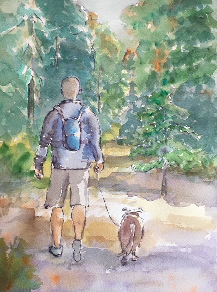 I did a series of hiking paintings. I put landscape backdrops from some of my favorite places I have traveled. Visit my website http://www.lazink.com. These pictures are 11×14.