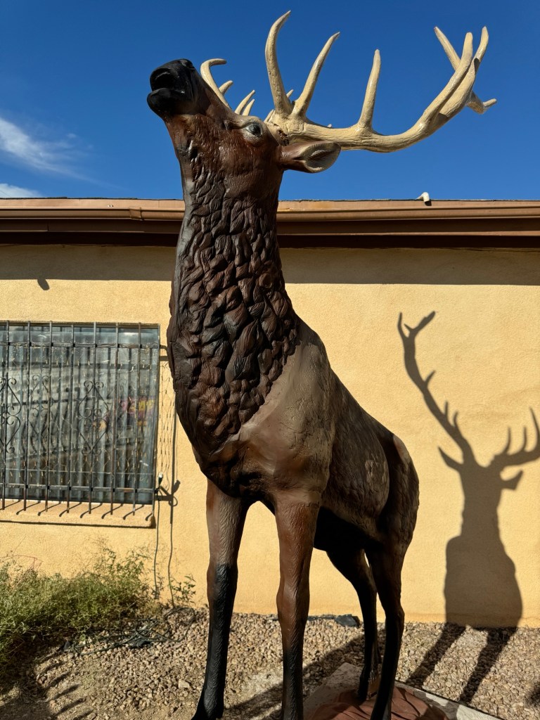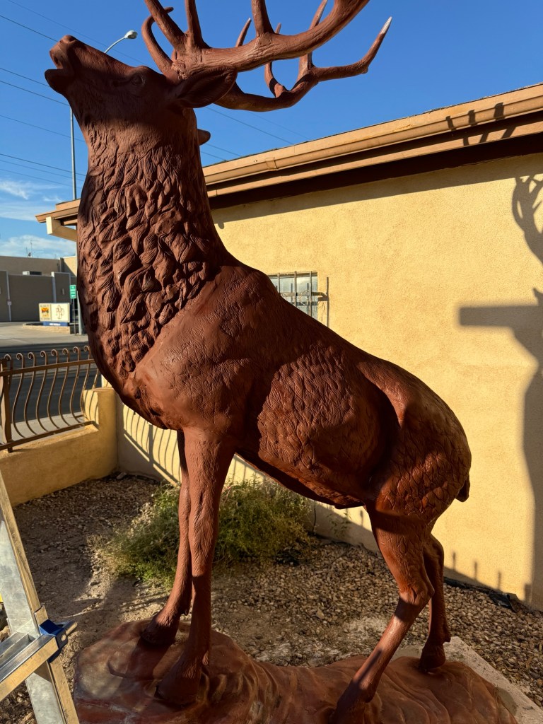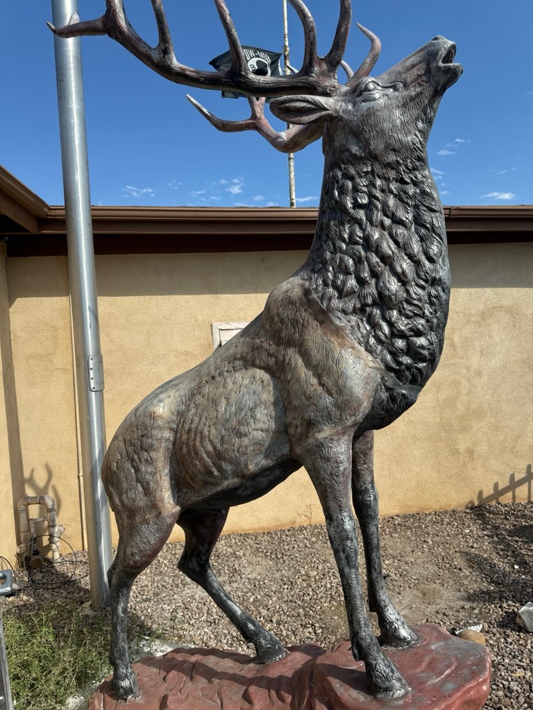 The local elks lodge asked me if I could restore the metal sculpture. so I stripped the old paint off as best I could in the middle of the Arizona Mohave valley summer. I think the paint melted off.