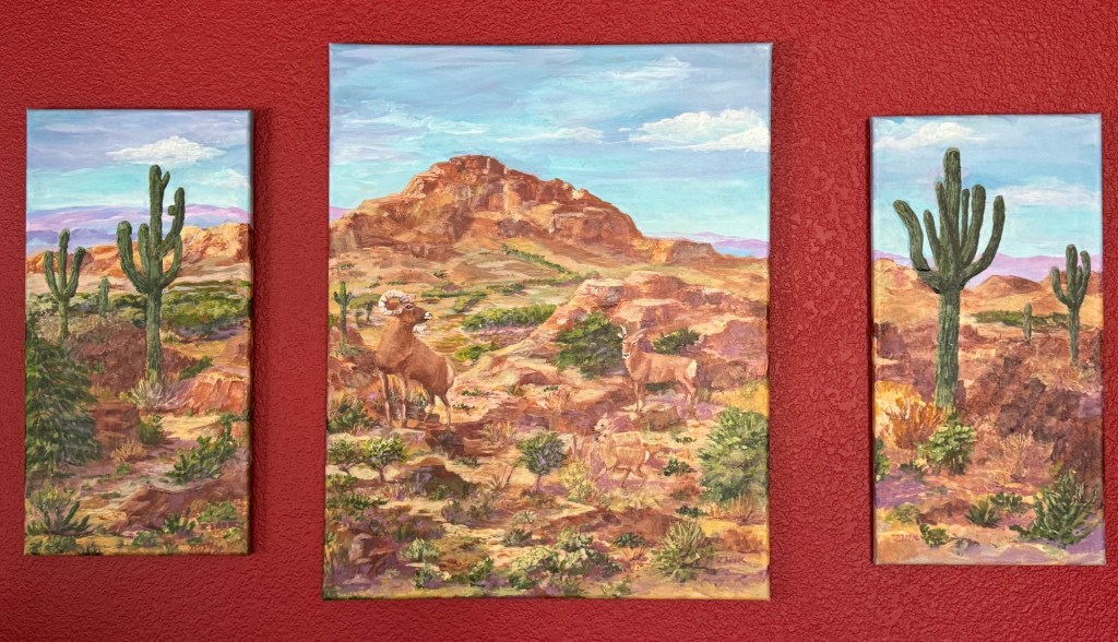 Ok annual art show with all my local art friends. Here are my entries. All acrylic mostly 8×10 but not the big daddy.