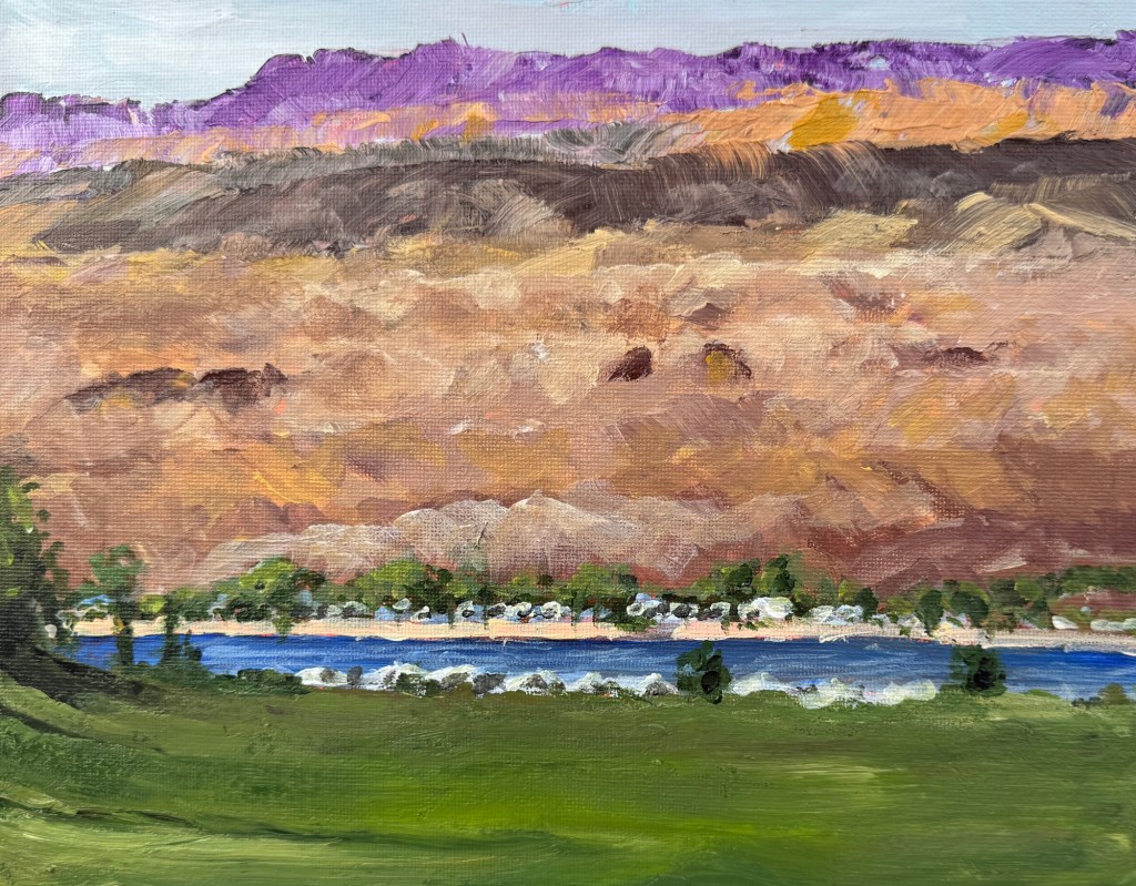 After golfing in beautiful Emerald canyon I painted a view from one of the fairways. Looking into the mountains across the Colorado river